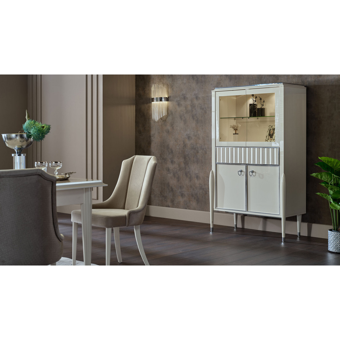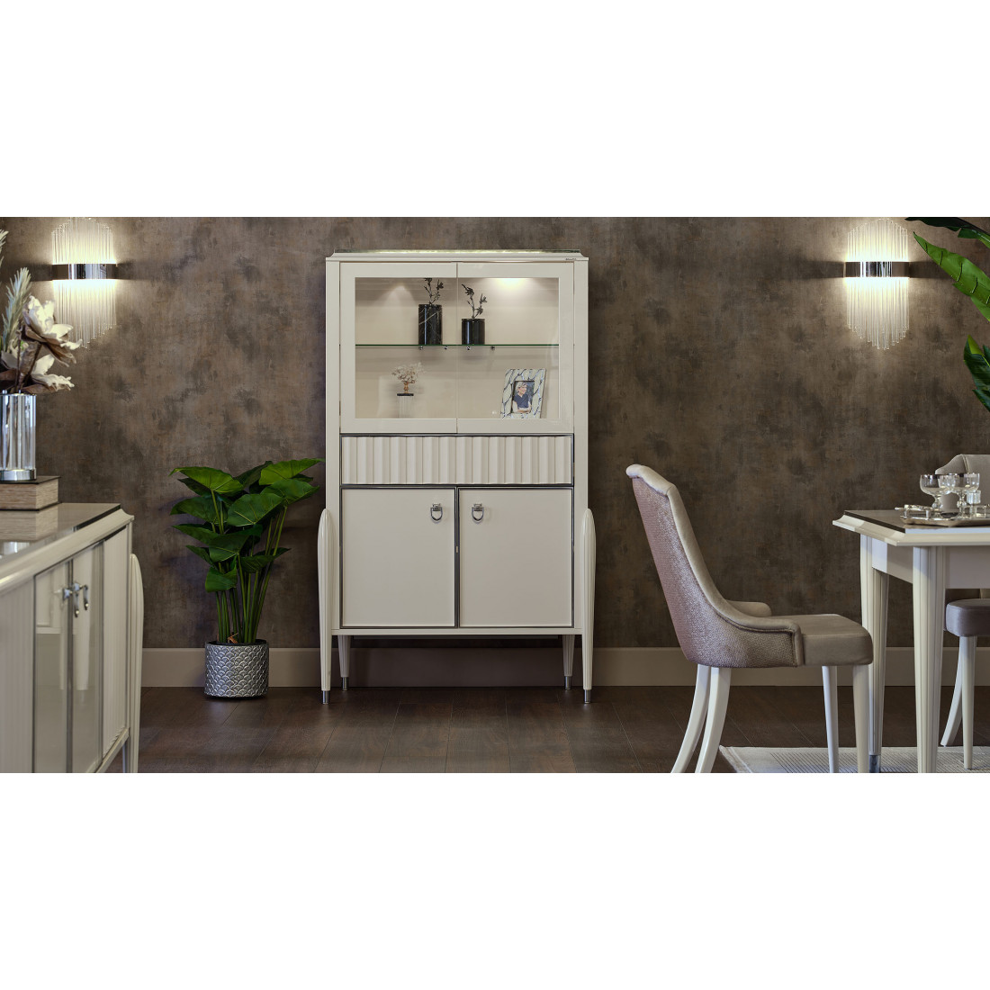 Двухдверная витрина для посуды Gravita (Гравита) GRAV-13 слоновая кость