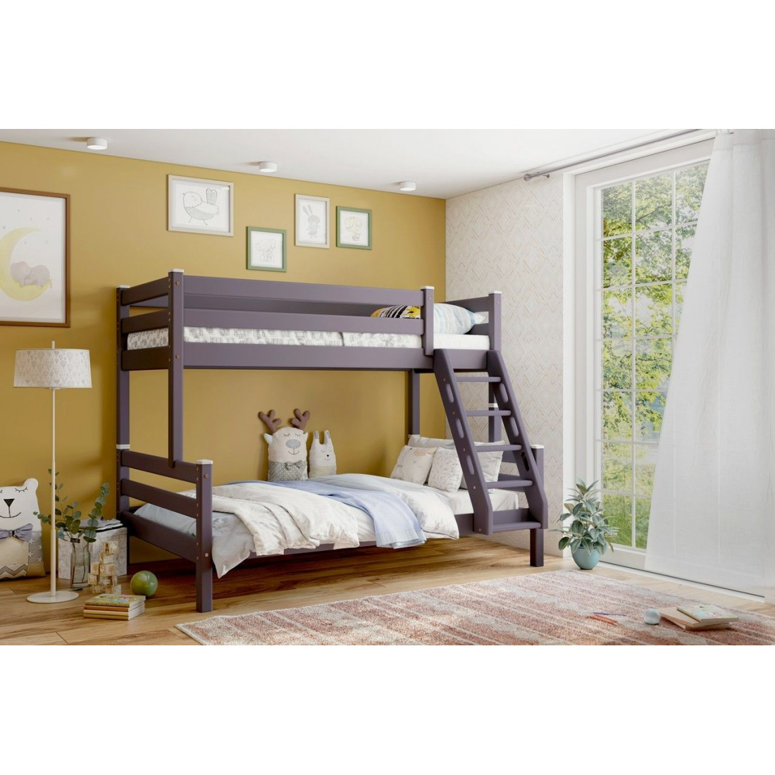 Двухъярусная кровать Адель выполнена в спокойных тонах, подойдет как для спальни мальчиков, так и для девочек.