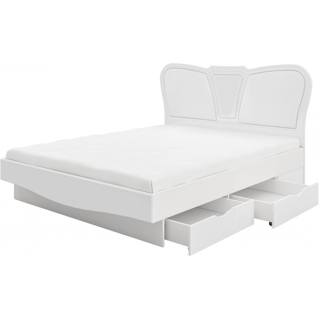 Двуспальная кровать с мягким изголовьем и ящиками МН-025-25 серии София от Мебель-Неман способна стать бесценным приобретением для всех, кто помимо создания особой атмосферы уюта и аристократичности в спальне, заботится о продуманной многофункциональности всей мебели и, конечно, о собственном ощущении удобства. Купить двуспальную кровать в красивом, изящном оформлении стоит не только за эксклюзивный вид и стильный дизайн, но и за практичность скрытых в основании выкатных бельевых ящиков.