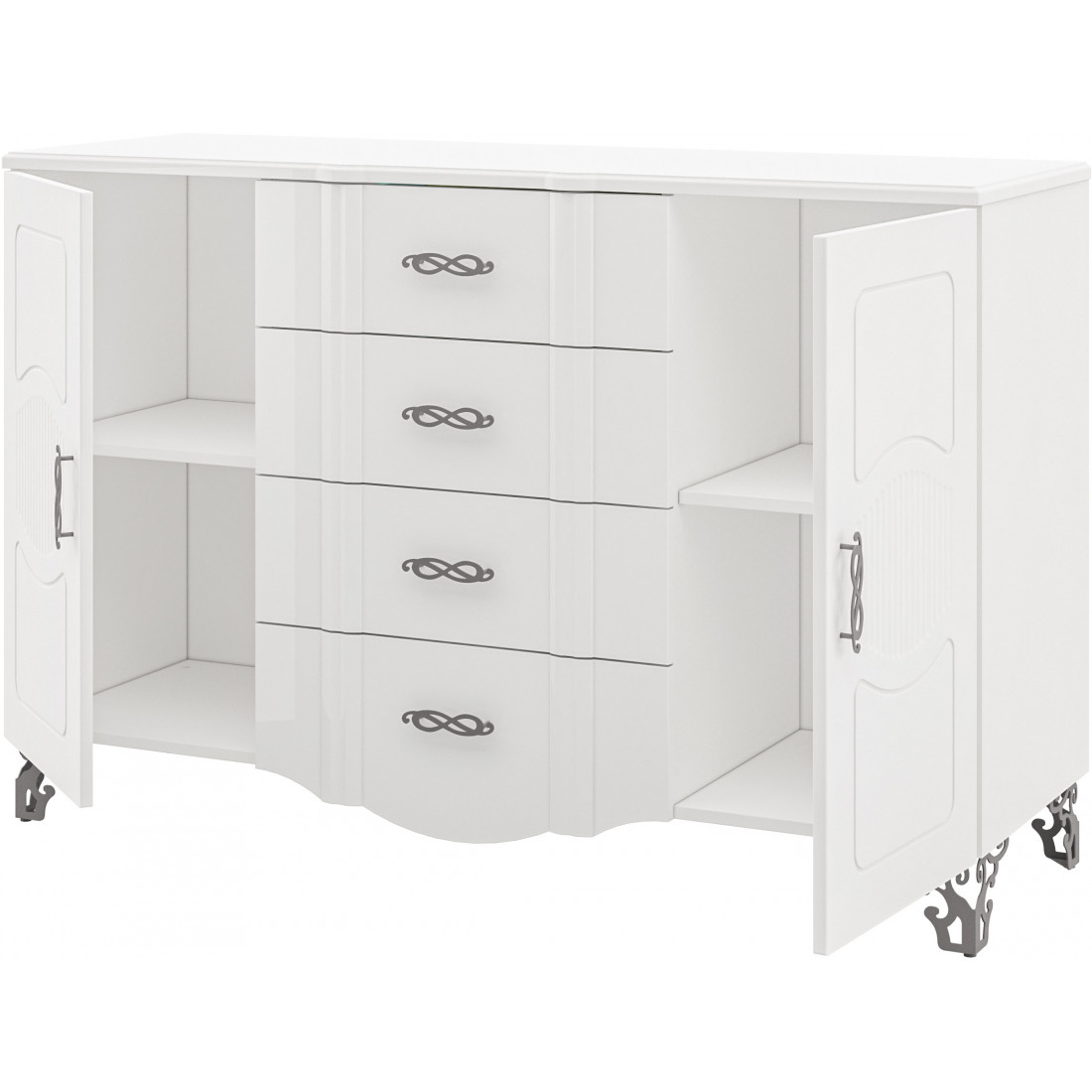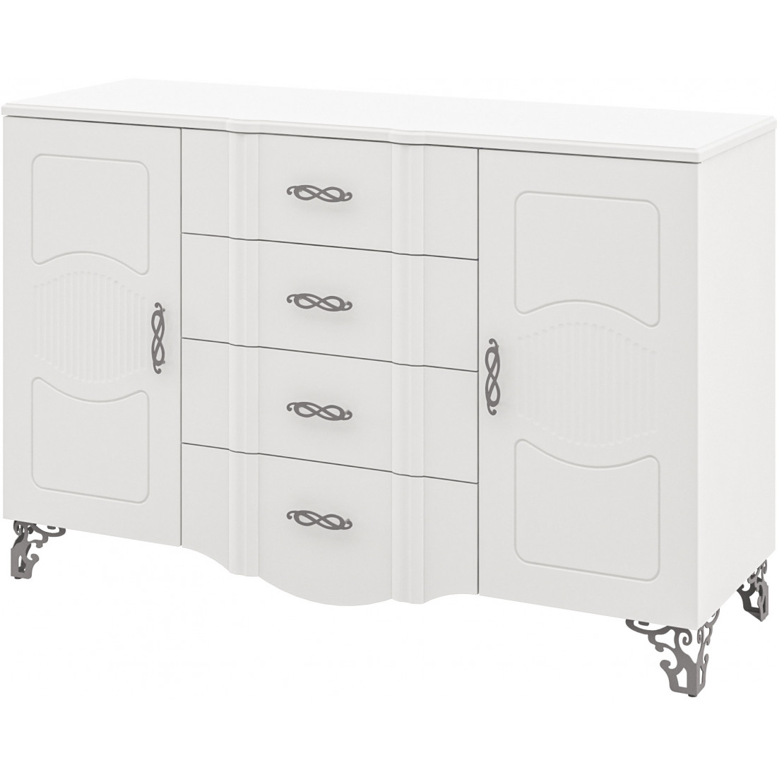 • Ручки – металлические, фигурной формы, перекликающейся с рисунком фрезеровки.