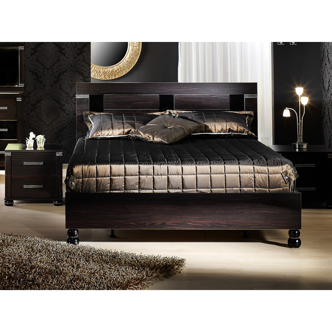 Спинка для кровати MIRA-25 (венге) серии Мира от Беллона выпускается производителем в трех, разных по ширине, размерах. Ею можно украсить базовый комплект Ferro и Active, также представленных на продажу в интернет-магазине Меланго. В оформлении высокой спинки используются стразы и декоративные вставки из глянцевого каленого стекла черного цвета. Купить спинку для кровати можно отдельно, сниженная цена делает модель еще привлекательней.