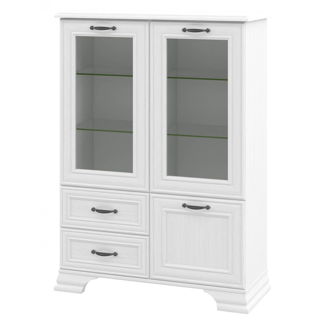 Тумба Юнона МН-132-20 от фабрики Мебель-Неман - универсальная тумба-витрина в классическом стиле с отделкой структурной фактуры, обрамленная рамочным фасадом, где металлические ручки выгодно подчёркивают стиль и изящество, всегда актуальна и востребована.